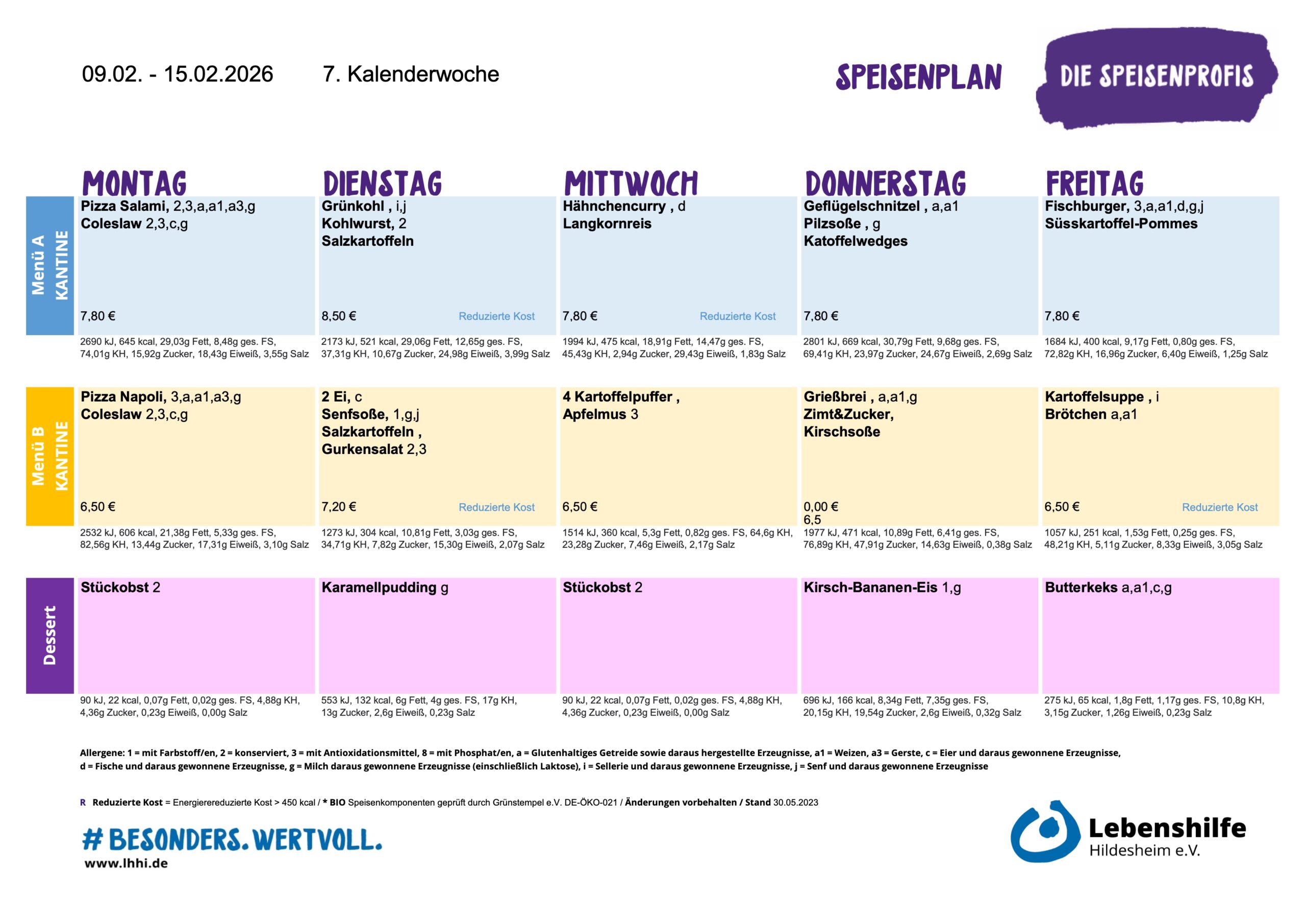 Dienstags und donnerstags bieten wir selbst gebackenen Kuchen. Dieser wird in Zusammenarbeit mit dem Bereich „Berufliche Bildung Hauswirtschaft“ hergestellt. Mittwochs und freitags bieten wir gefüllte Croissants