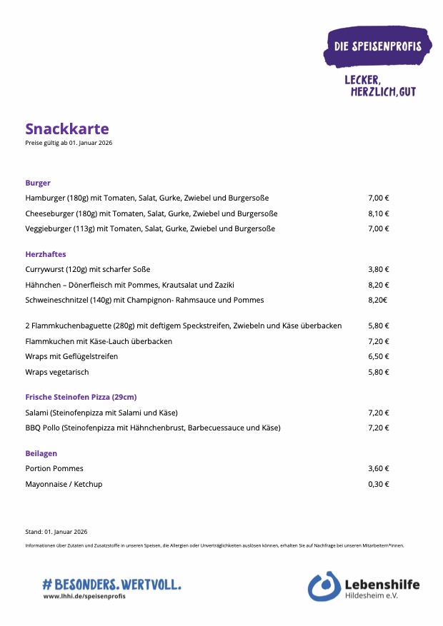 Hier findest du die Snackkarte